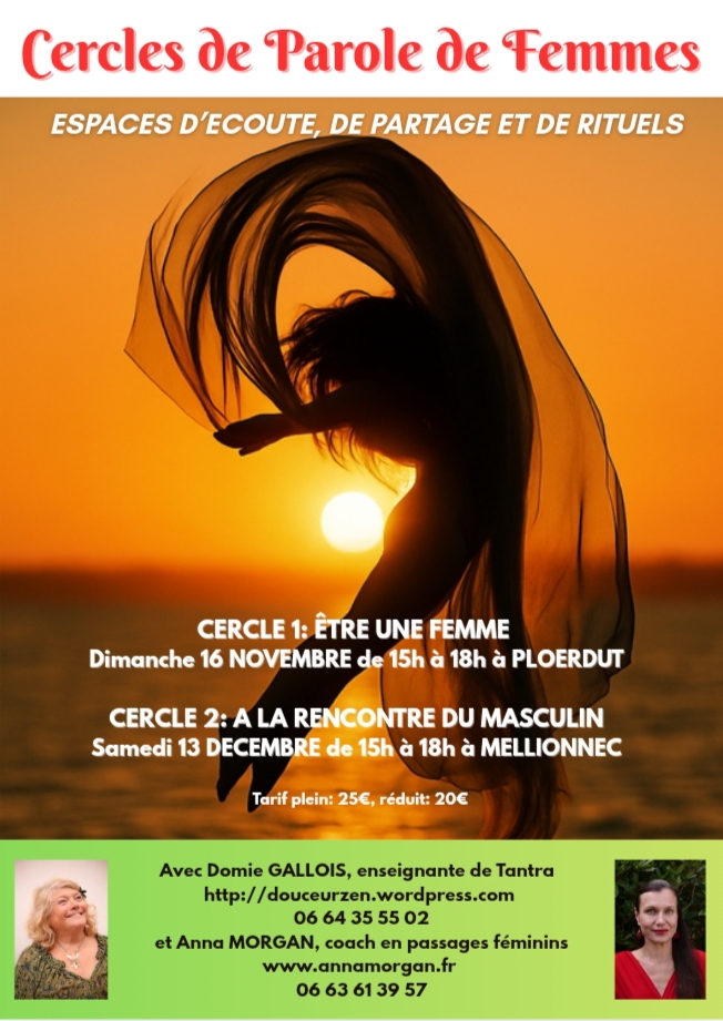 16 NOVEMBRE et 13 DÉCEMBRE 2025, en CO-ANIMATION avec Domie Gallois, enseignante de Tantra, toutes les modalité sur l’affiche ci-dessous